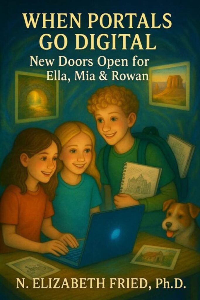 Ella, Mia, Rowan, and their trusty terrier Scout step into portals of shifting pixels, glowing icons, and worlds that flicker between real and unreal. From paper-photograph forests to glass cities humming with code, every path tests them in new ways. To keep the portals open, the friends must balance creativity with technology—or risk losing the connections that hold their worlds together.